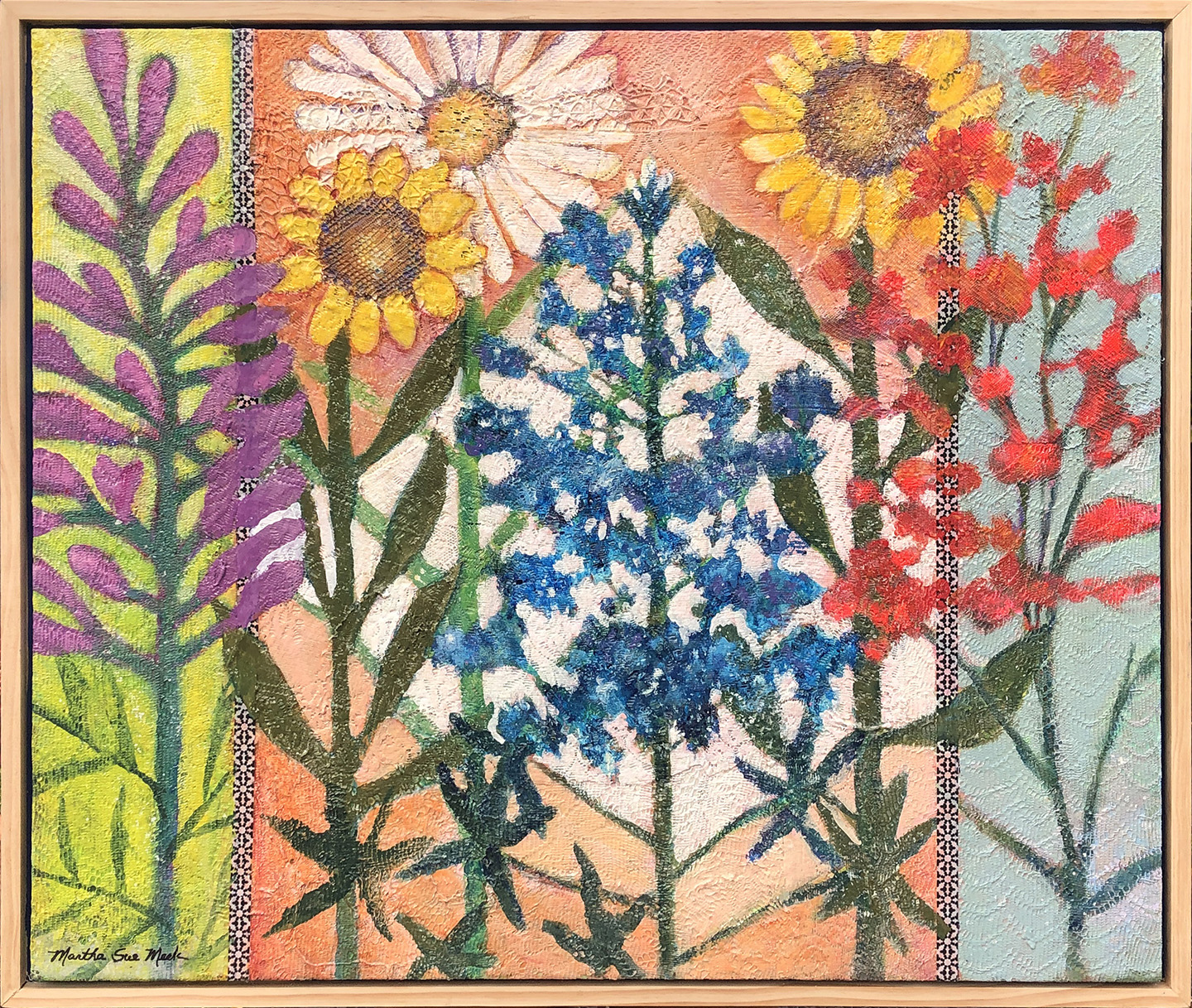 Martha's paintings exhibit a joy of color and design. Her favorite medium is acrylic. She retired in 2007 from Sherrod Elementary in Arlington - where she gave hundreds of young students their first art lesson.
