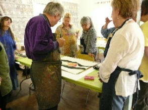 | The emphasis is on creativity - learn new techniques - amaze yourself! Bring your acrylics, brushes, and hot-press watercolor paper. Index paper is for sale at the Gallery. Beginners are welcome. |